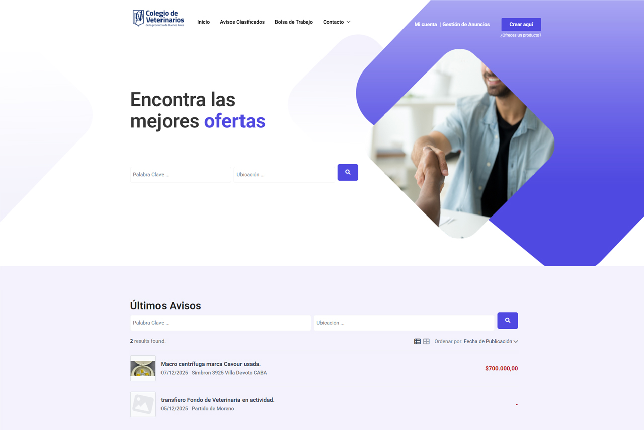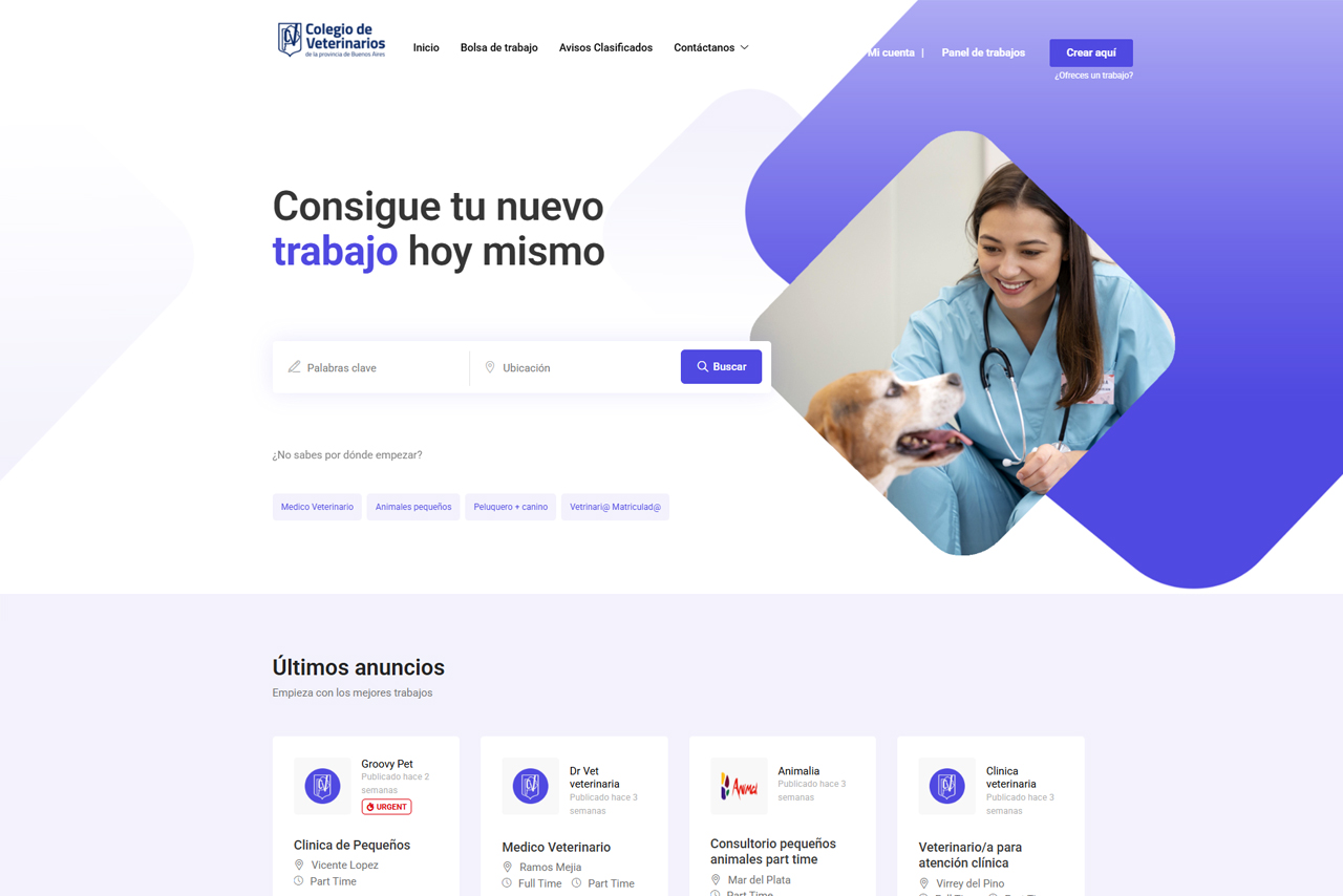 Rocio, head of communications, contacted us through another client with the goal of jointly developing a website to present members with job postings and classified ads in the veterinary field.